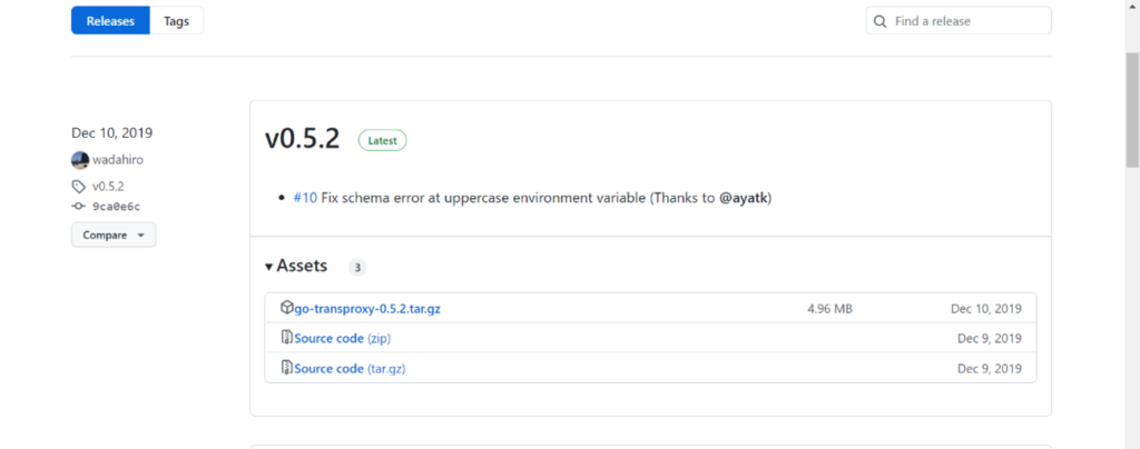 GitHubにアクセスし、リリースページに行くと以下のような画面が表示されます。