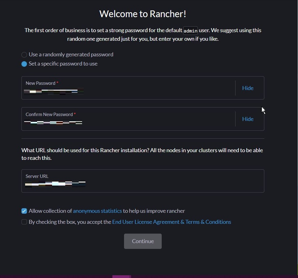 次に、「https://[Rancher用OSのIPアドレス] 」をWebで入力し、Rancherに接続します。