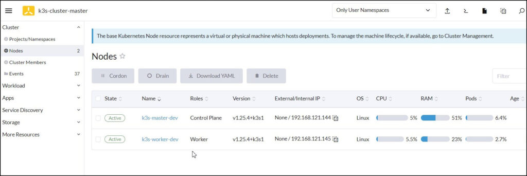 インポートしたクラスタを選択して作成したマスターノードとワーカーノードが見えることを確認できれば、連携完了です。