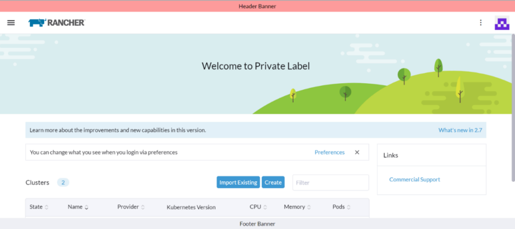 Footer Banner:すべてのRancher画面に表示されるバナー