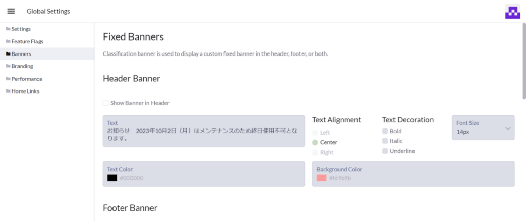| Footer Banner | Show Banner in Footer | ■/□ | チェックボックスをオンにするとフッターバナーが表示される |