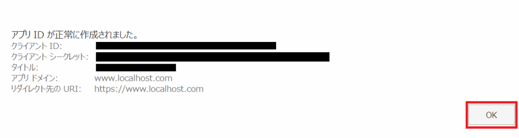 ⑤リダイレクト先のURI:「https://www.localhost.com」とします(これ以外でも問題はありません)。