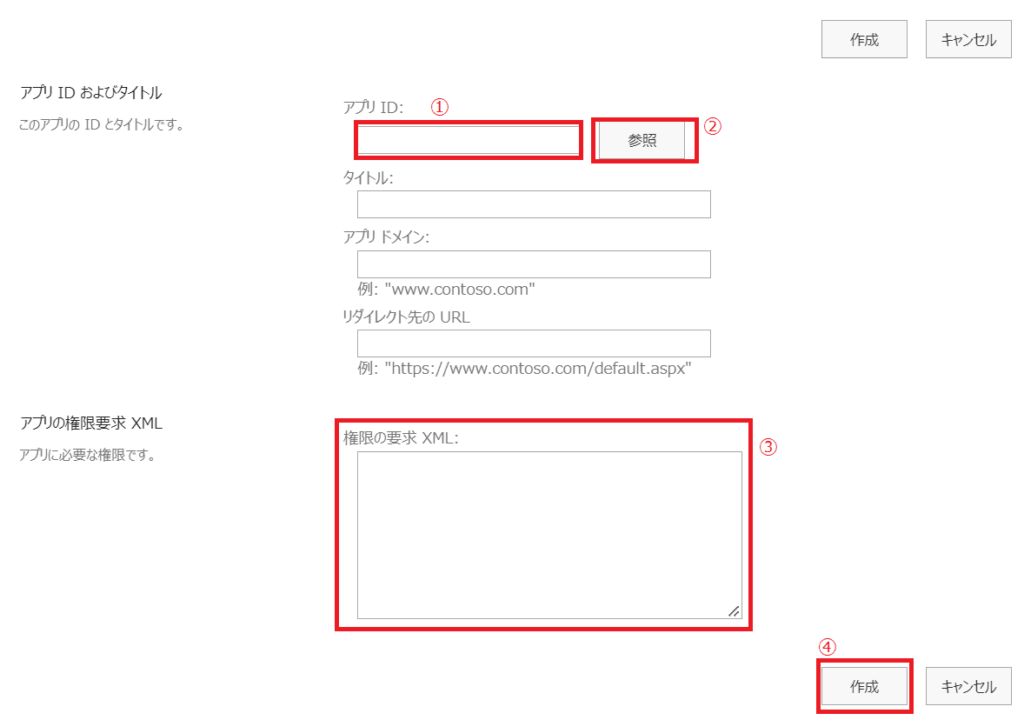 ① URL:以下のURLで赤字の部分をSharePoint OnlineのテナントIDに変え、設定します。