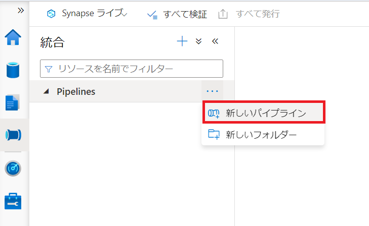 次に、AzureのSynapse Analyticsサービスから、Synapse Studioを起動し、パイプラインを使ってデータを取得する手順を紹介します。