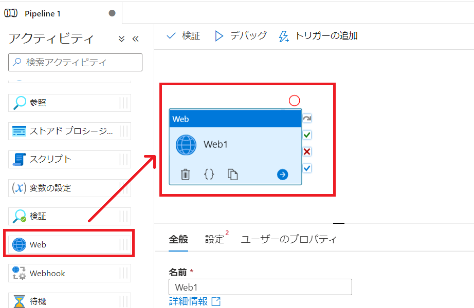 2-3.「Web」アクティビティを追加
