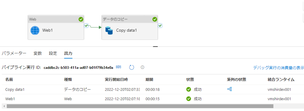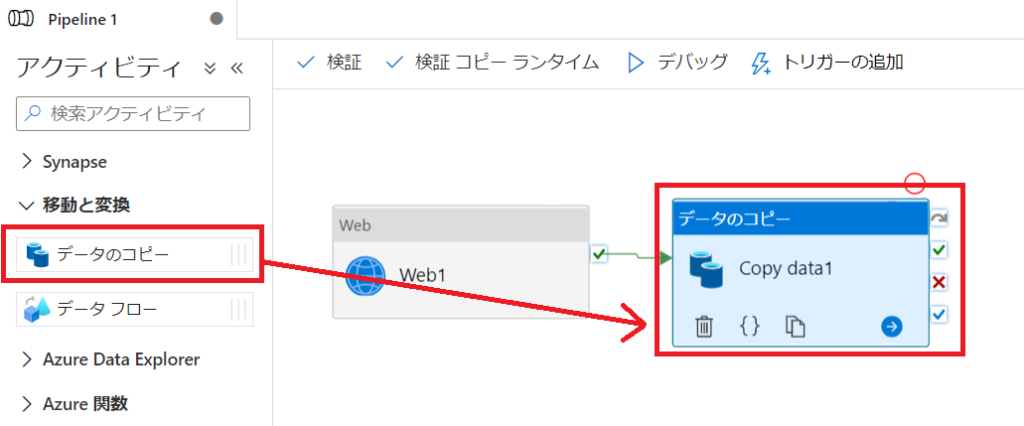 2-5.「データのコピー」アクティビティを「Web」アクティビティの後に追加
