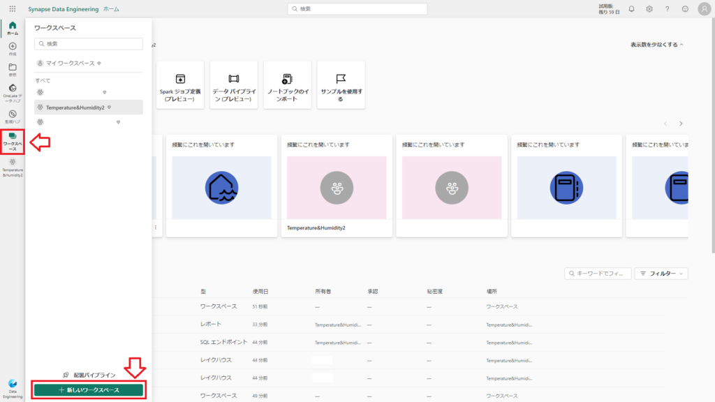 左部から「ワークスペース」→「新しいワークスペース」を作成します。