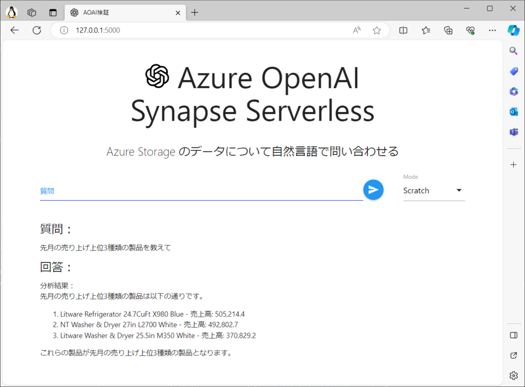 今回は下記のように設定・コーディングすることで、自然言語でデータベースを検索するアプリケーションを作成してみました。