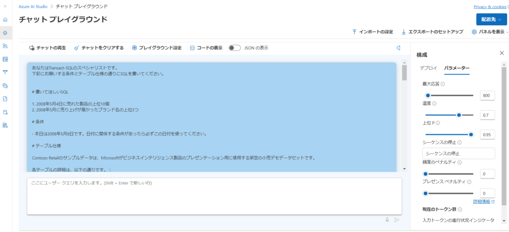 - Azure OpenAI APIからAzure AI Searchを検索するように設定
