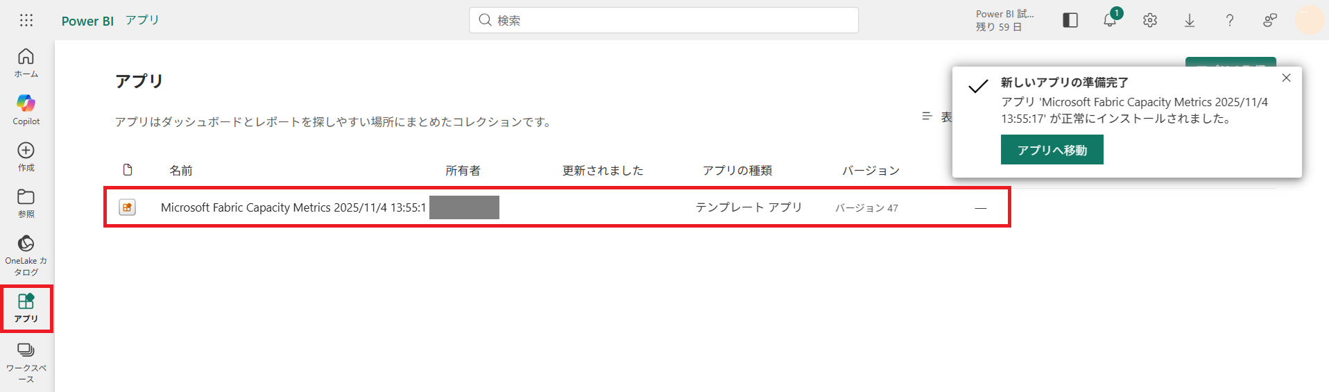 ●Microsoft Fabric Capacity Metricsアプリのインストールについて