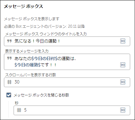 今回は詳しく紹介しませんが、画面上にメッセージボックスとして表示する機能を使います。