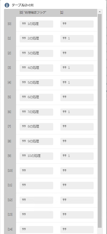 実際に動かしてみると、このようにテーブル変数に値が代入されます。