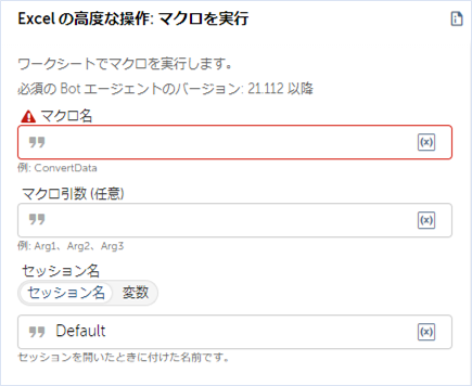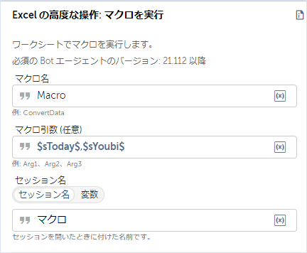 | マクロ引数 | マクロに渡す引数を入力する | 任意 |