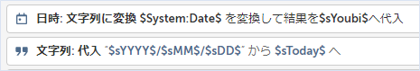 今回は事前に取得した「日付」と「曜日」の変数を設定しました。