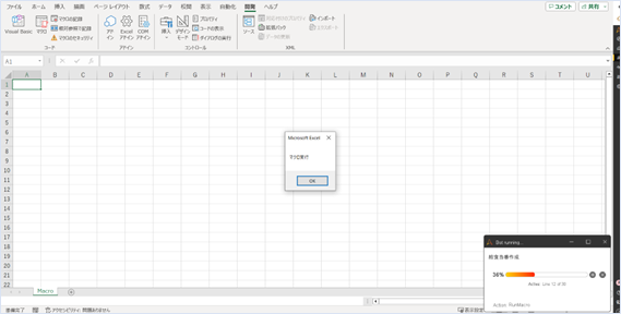 ダイアログが表示されると、ダイアログが閉じられるまで以下のように「マクロを実行」の処理が終わらないため注意してください。