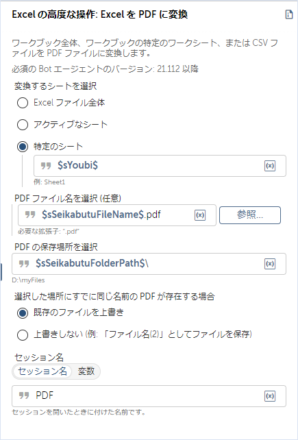 | PDFの保存場所を選択 | PDFの保存先を記入する | - |