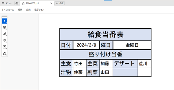 この3つのアクションを使って「給食当番表」をPDF保存するロボットを作ります。