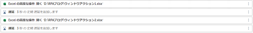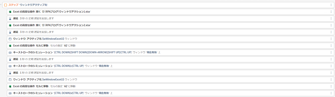 その後、別のウィンドウ(今回はExcelファイル)を開き、操作する処理を加えました。