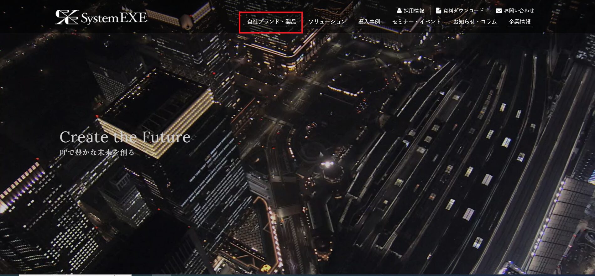 今回は、システムエグゼのコーポレートサイトを開いて、上部バーの「自社ブランド・製品」ボタンを押下する処理を作成します。