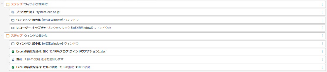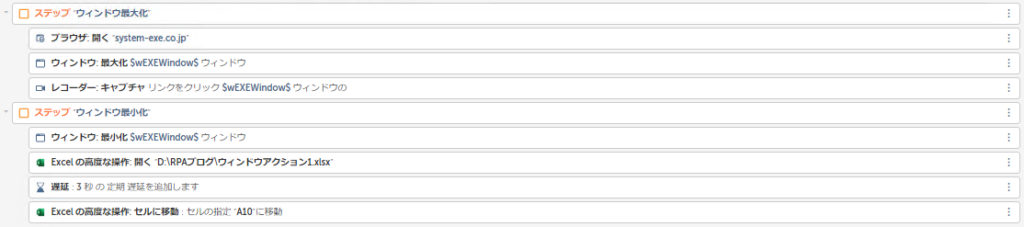 エラーを防ぐために、「ウィンドウ:最大化」アクションを使うことで、ロボットが正常にボタンを押下できるようになります。