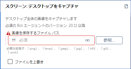 画像を保存するファイルパスキャプチャ画像の保存先を入力する