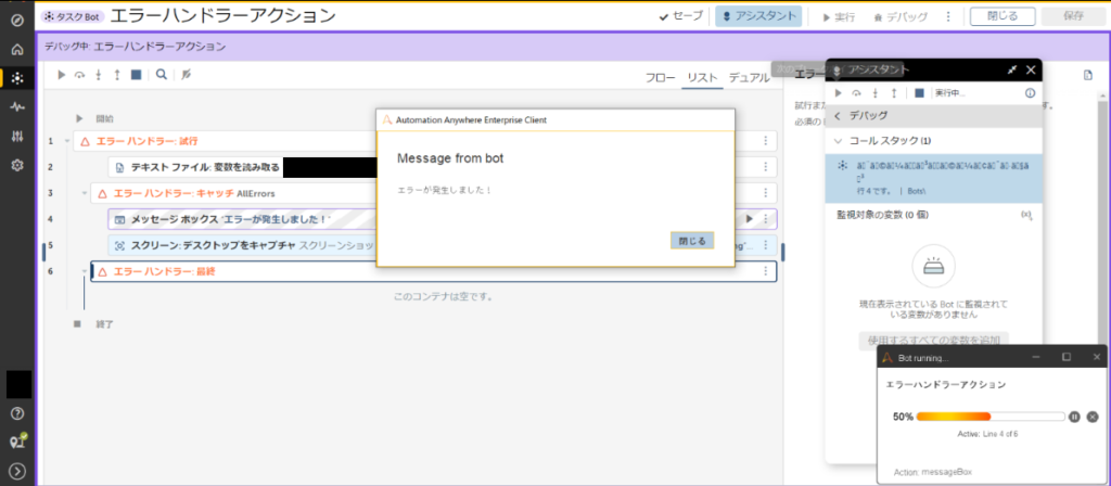 Automation Anywhere(A360)をさわってみた!-エラーハンドラー編