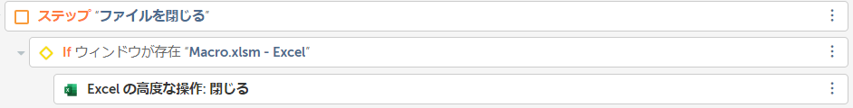 そして、ウィンドウパッケージの「閉じる」アクションや、Excel(基本/高度/365)の「閉じる」アクションを使用して閉じます。