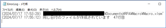 最後に、同一日付のPDFファイルがある場合に、エラースローで例外処理を実行させた結果は以下です。