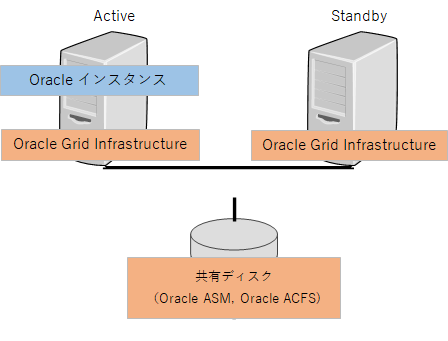 - データは、共有ディスク上に構成したOracle ASMもしくはOracle ACFSに配置