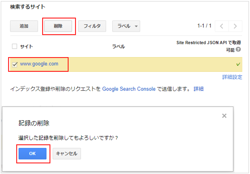 なお、「検索するサイト」は必須入力ですが、後で削除できます。
