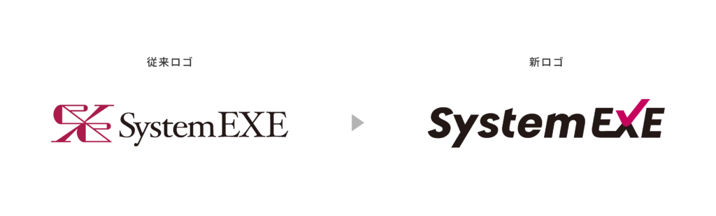 新しいロゴは、システムエグゼ(SystemEXE)の社名そのものを主役としたロゴタイプとして設計されています。
