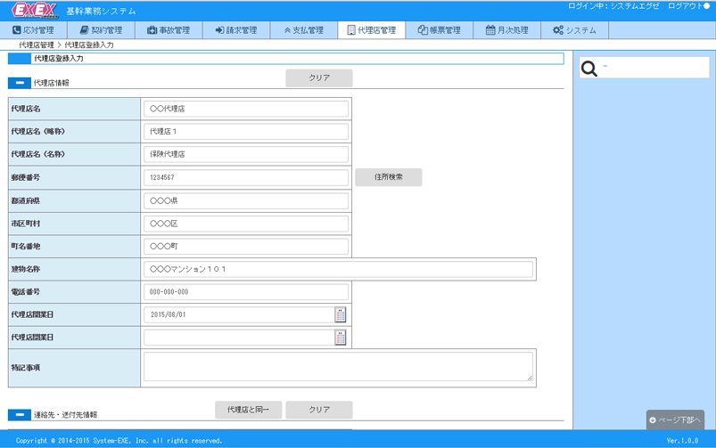 月次計上処理と、保険料入金状態による契約不成立・失効や契約更新など自動的な異動を行います。
