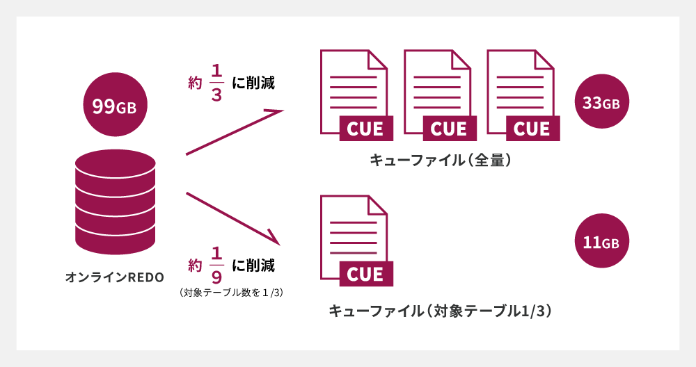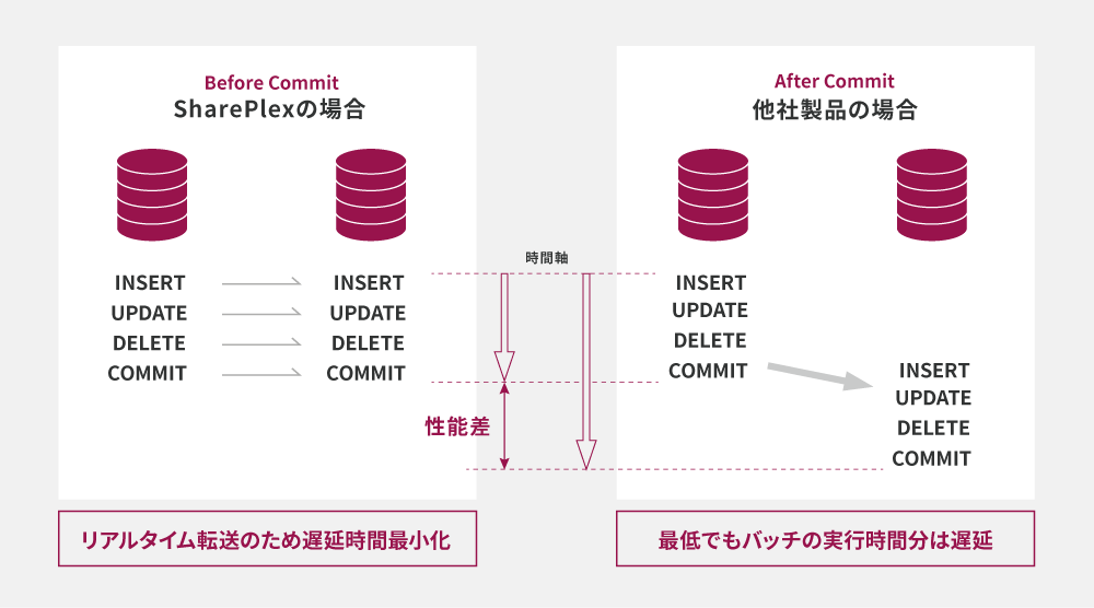 コミット前の変更情報もすべてリアルタイムに転送するため、大規模バッチ処理時のデータ反映の遅延時間が最小化