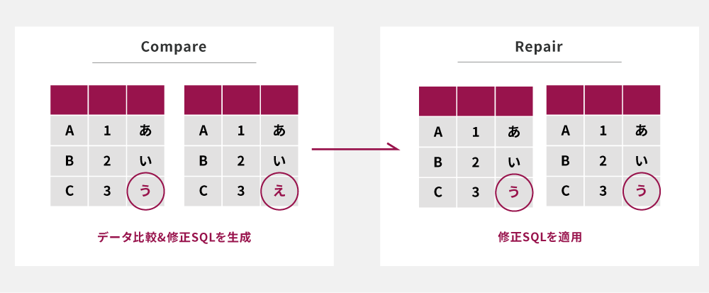 比較後にデータを修復したい場合のrepair機能を論理レプリケーションソフトウェアの中で唯一実装