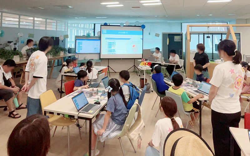 同イベントは親子で楽しみながらSDGsや地域の魅力を学ぶというもので、当社は本社オフィスを会場としてプログラミング体験ワークショップを開催し、多くのお子さまにご参加いただきました。